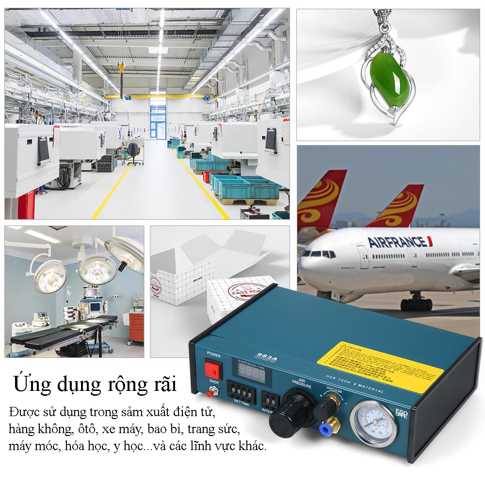 Máy nhỏ keo tự động | máy nhỏ dung dịch | Automatic Glue Dispenser | 点胶机 được ứng dụng trong sản xuất điện tử, máy tính, máy ảnh, điện thoại, máy in, đồ trang sức, hàng không, ô-tô, xe máy, bao bì, hóa học, y học…
