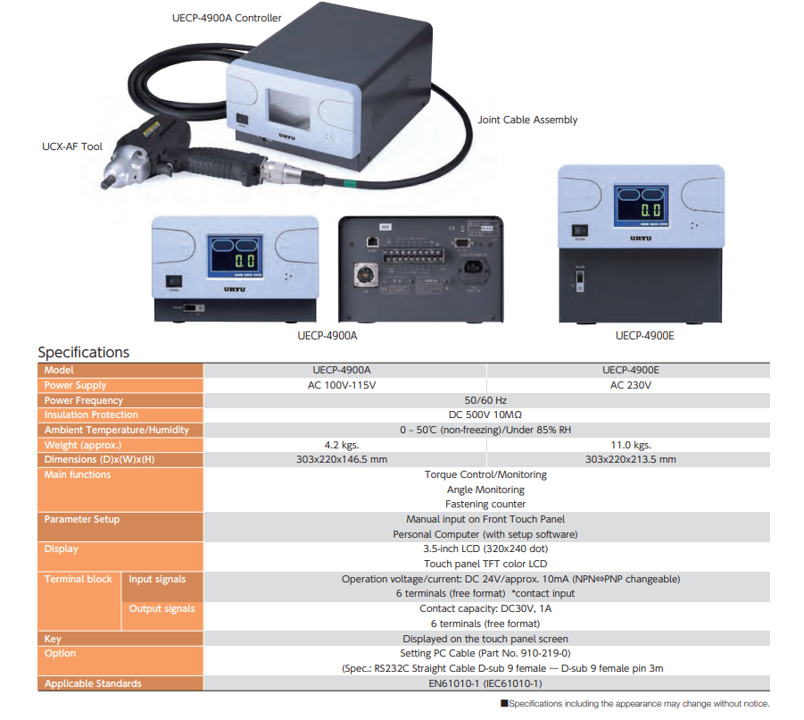 | Bộ điều khiển tương thích | UECP-4900 series |