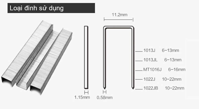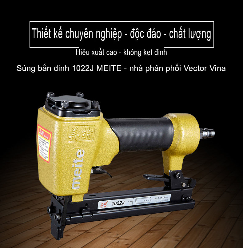 VECTOR VINA cung cấp súng bắn đinh 1022J MEITE tại Hà Nội và TP. Hồ Chí Minh. Súng bắn đinh 1022J Meite là dòng sản phẩm với nhiều ưu điểm như công nghệ bắn đinh nhanh và mạnh mẽ, tiết kiệm thời gian, hiệu quả cao; chất liệu kim loại cứng bền; tay cầm cao su vững chắc và kết cấu chung được thiết kế tối ưu; các bộ phận bên trong đơn giản, dễ bảo trì; rãnh đặt đinh dễ đóng mở. Sản phẩm này thường được sử dụng trong ngành bọc nệm, lắp ráp đồ nội thất, tủ, khung ảnh, ngành công nghiệp ô tô.